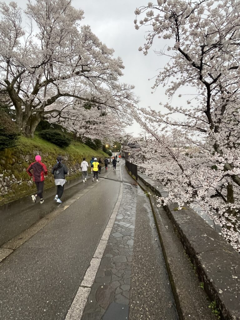 兼六園に向けて走ってますが、目線の下に桜が咲いてます。