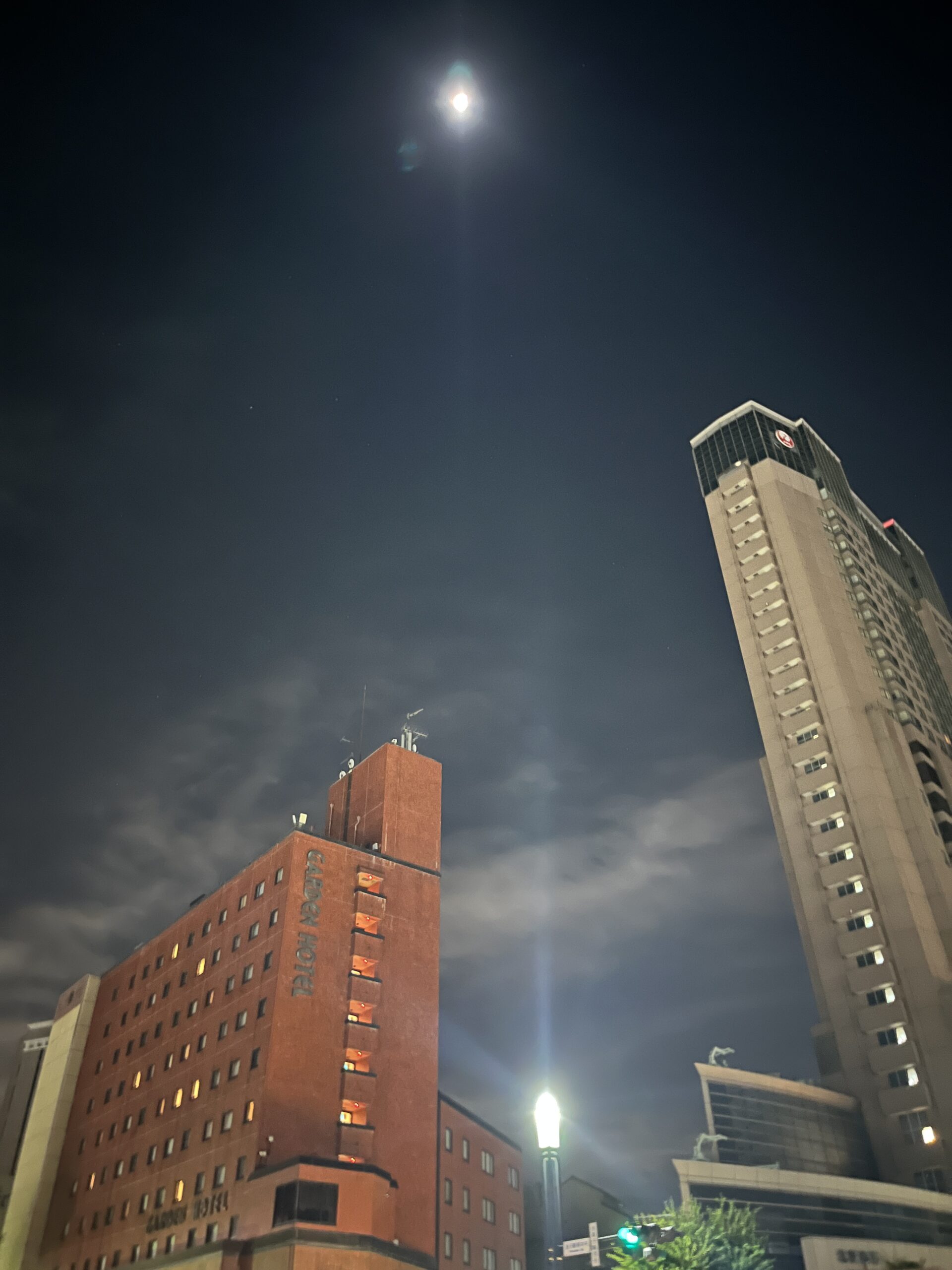 夜空に綺麗な月が出てたので、金沢で一番高いビルと共に収めてみました。