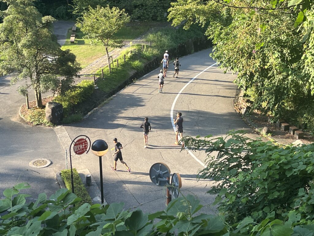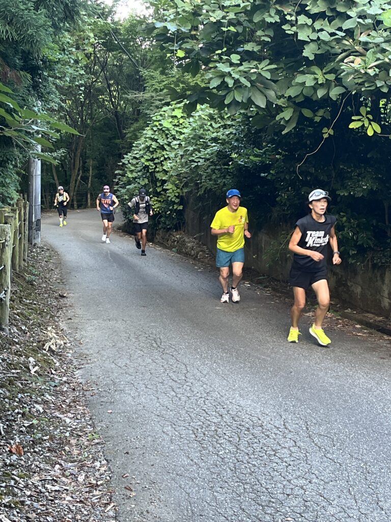 坂〜、を走ってるメンバーを坂の上〜から撮ってみた。