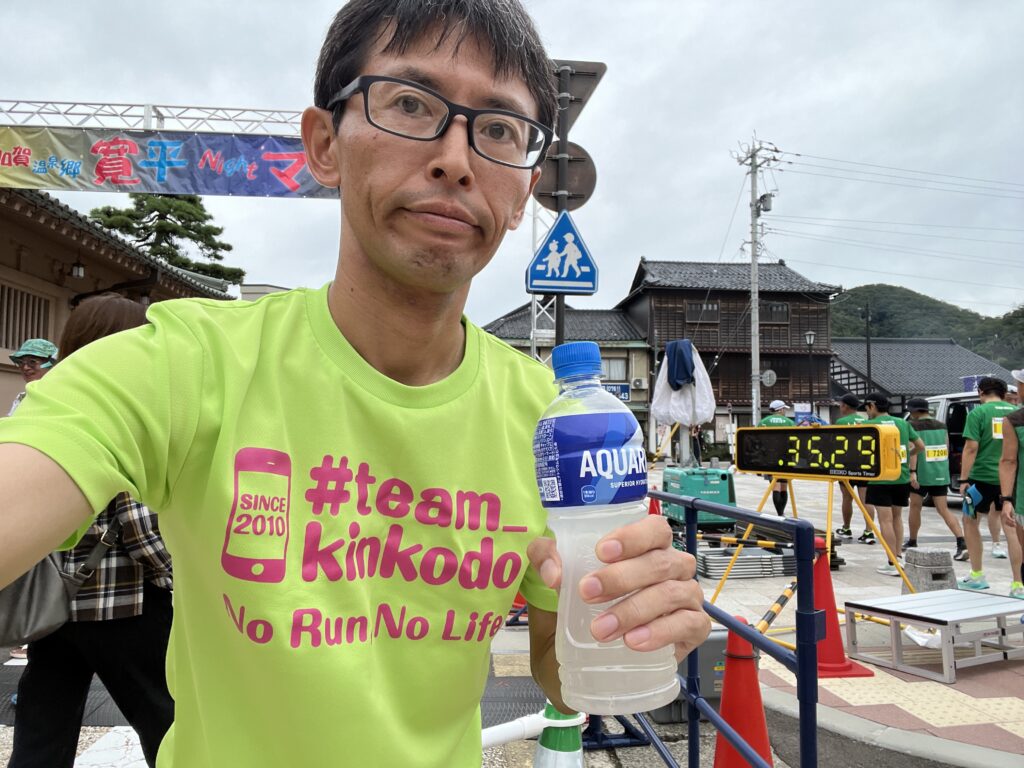 後ろにあるタイマーでは、スタートまで35分を表しており、他のランナーさんより35分先にスタートした事になります。