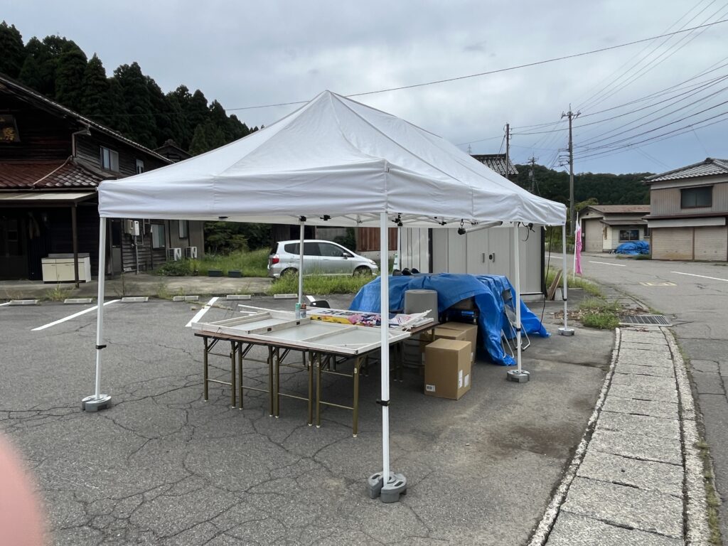 コース上、ラストのエイドとなるであろう場所には、テントが設置されてましたが、まだスタッフさんはいませんでした。