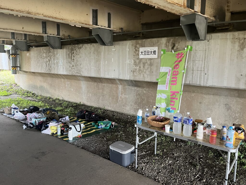 各自持参した補給物をここに置いておき、最短で約3キロおきに取れるように準備しておきます。