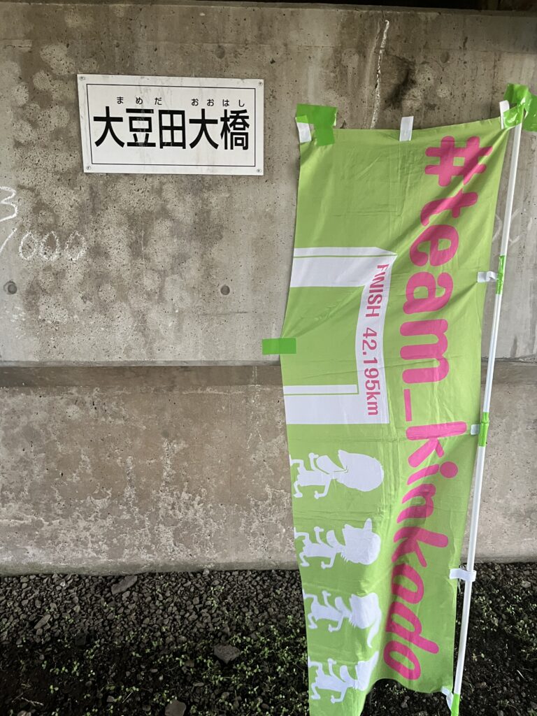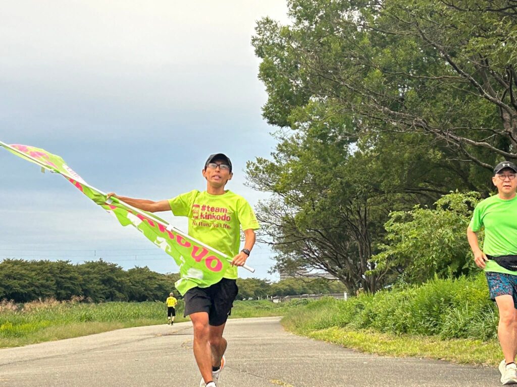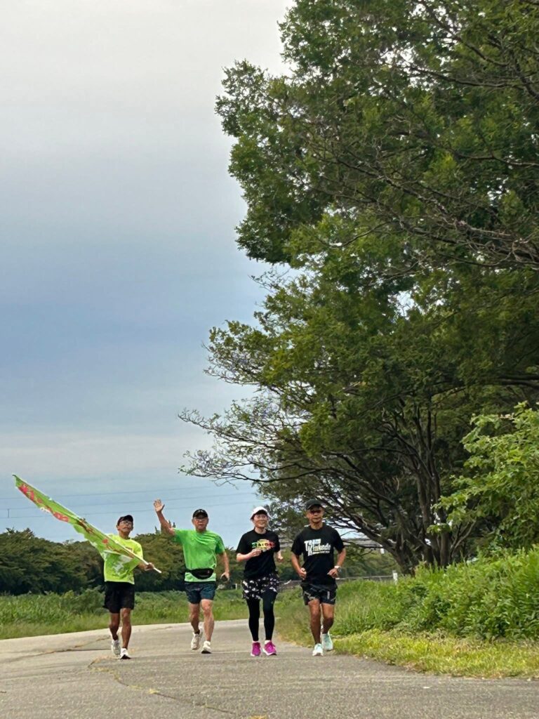 私は、折り返し地点までチームフラッグを持って行ってたので、それを持ち帰りながら走ってきました。