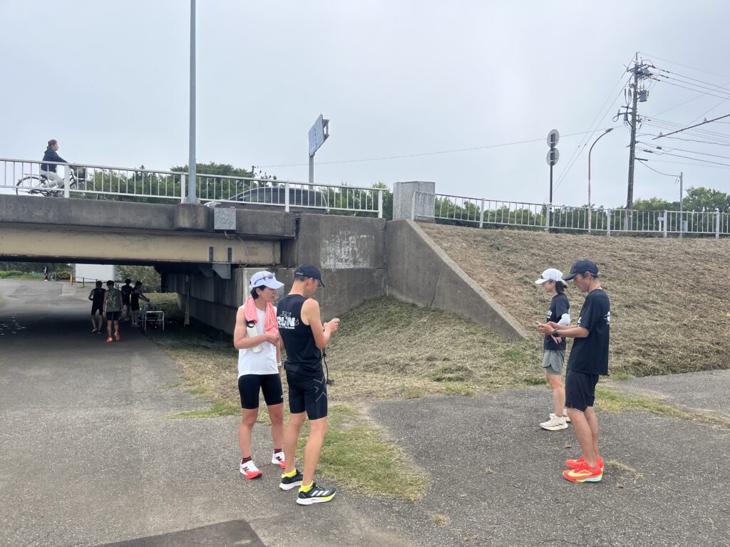あとは、軽く走りながら応援していると、各自30キロが終わって、橋の下に集まってきました。