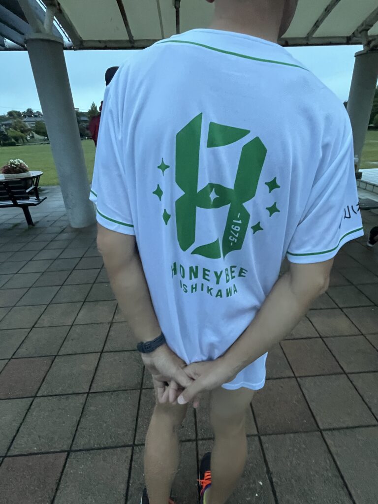 帰りは、左から、チームTシャツ、富山マラソンTシャツ、一刻も早く脱ぎたいシャツのトリオでお送りしました。