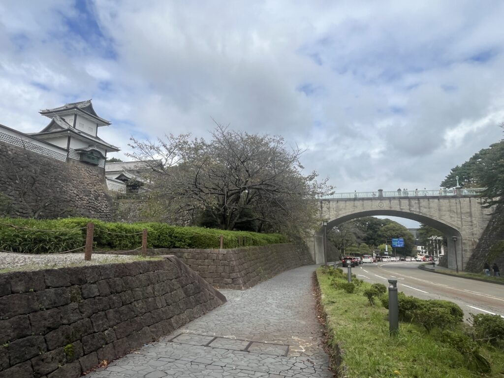 スタートしてすぐの、兼六園と金沢城公園をつなぐ石川橋の手前には、加賀友禅大使の方々がいらっしゃるので、ランナーの皆さんは左側を見る準備をしておきましょうw