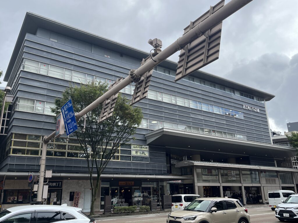折り返しを戻ってきて、武蔵の交差点を右折してすぐの左手に、近江町市場が見えます。