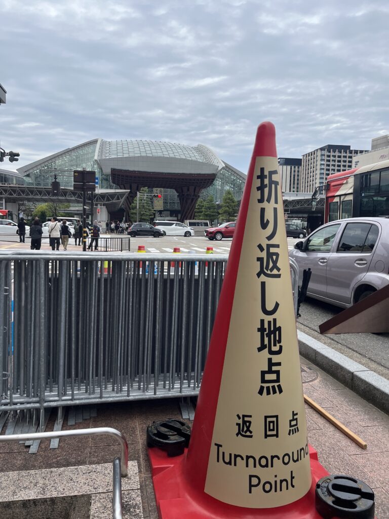 近江町市場から金沢駅に移動する時に、翌日の金沢マラソンで使用する、折り返しの特大三角コーンを見つけ、思わず写真を撮ってしまいましたw