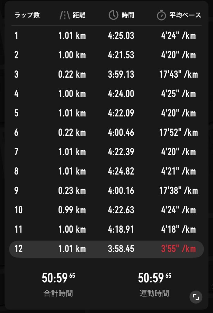 最後に、私だけ1,000mを追加し、週末のレースペースで走りました。