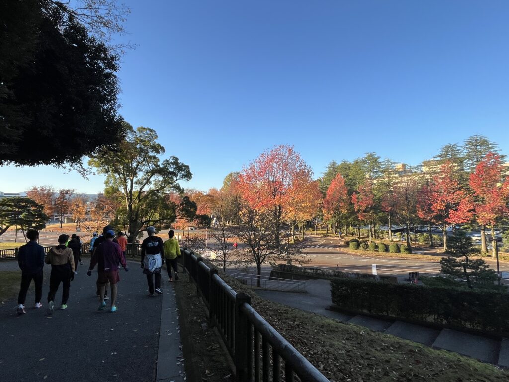 今回の朝練は紅葉を見に行こうよう練習でした。