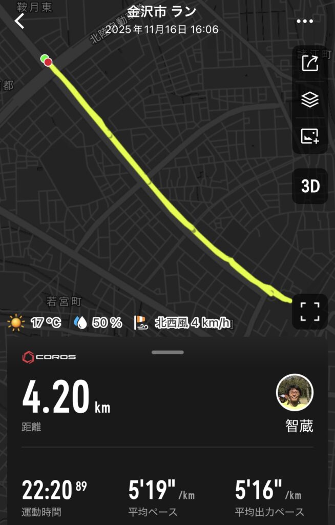 金沢駅の往復だけでしたので、こんなもんでしたが、1日トータルで26キロ走れました。