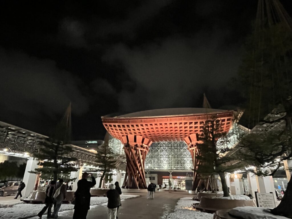 金沢駅の鼓門の場所は観光客も多く来てるので、雪も無くなっているかと思いましたが、まだありました。