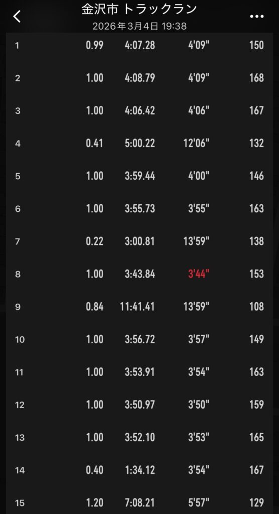 カットダウン走を良い塩梅のペースでやり終えましたが、まだ物足りなさそうなチームメンバーのお供をし、追加で4,400mのペース走をしました。